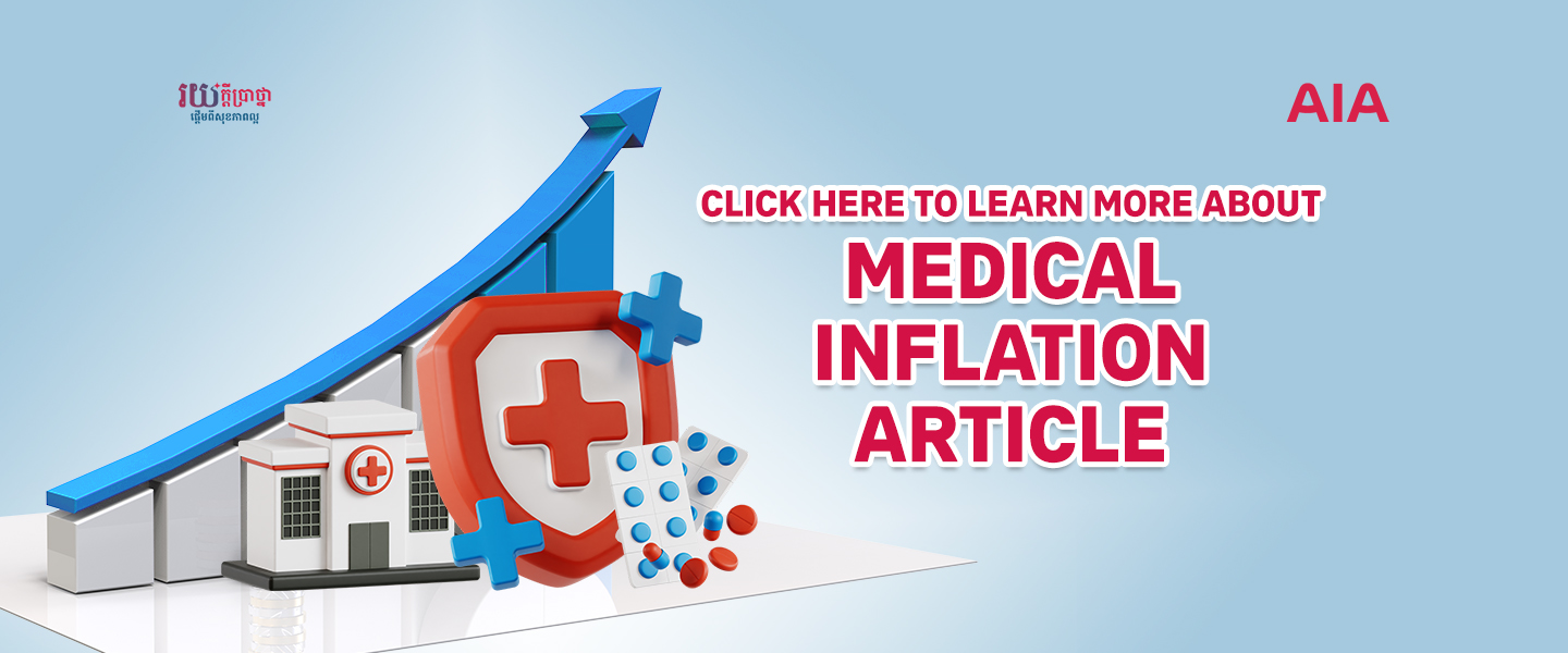 AIA សម្រាប់សុខភាព (AIA Samrab Sokapheab) supports medical expenses and long-term protection up to 100 years of age. This reinforces AIA Cambodia’s standing as the only insurer that guarantees renewability of your medical plan even if you fall seriously ill after been protected. We continuously ease your financial burden during difficult situations and when you need it most.